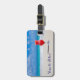 Cette étiquette de bagage comporte une image d'une boisson tropicale sur une plage blanche de sable, avec des vagues à l'arrière-plan. La "heure de détendre" le texte peut être customisée si désirée, de même que peut le texte sur le dos de l'étiquette. L'image sur le dos de l'étiquette peut également être enlevée de sorte que le texte puisse être rendu plus grand.