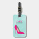 Marque de bagage personnalisée avec l'image d'une chaussure en stiletto rose chaud. Placez-vous sur un arrière - plan d'aquarelle vert menthe. Chic et glamour.