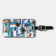 Étiquette À Bagage Ile moderne Tropical Check Bleu Blanc