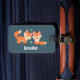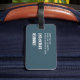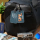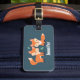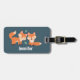 Marque de bagage personnalisée avec une illustration graphique de 2 renards orange à l'air mignon et heureux. Arrière - plan vert foncé.