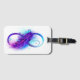 Infinity symbole with a beautiful feather painted in purple and blue bright colors on white background