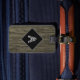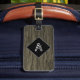 Les caractéristiques de conception ce de bagage d'étiquette un motif rustique avec du bois brun aiment l'aspect. Il comporte également une lettre initiale faite sur commande dans une police géniale sur l'avant, et l'information personnalisée de contact sur le dos.