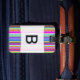 Caractéristiques de conception ce de bagage d'étiquette un motif attirant des rayures (ou des lignes) de diverses couleurs. Il comporte également une lettre initiale nommée faite sur commande dans une police audacieuse dans un secteur plus de couleur claire (avec quelques bords incurvés) sur l'avant, et a customisé des détails de contact sur le dos.