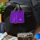 Un arrière - plan de couleur violette. Personnalisez et ajoutez vos lettres monographiques et votre nom complet sur le devant. Vos coordonnées au verso.