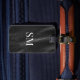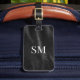 Élégant Classy Minimal en cuir noir Monogramme Initiales Bagage Balise. Caractéristiques arrière - plan d'image en faux cuir.