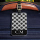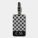 Améliorez votre jeu de voyage avec notre étiquette de bagage monogrammée avec vos initiales sur un design élégant de plaid noir. Cet accessoire simple et professionnel est parfait pour le voyageur moderne, ajoutant une touche de personnalité à vos sacs. L'arrière offre un espace suffisant pour vos coordonnées et vous permet d'identifier facilement vos bagages.