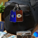 Étiquette À Bagage Insigne de ligne bleue mince avec bouton sur l'env