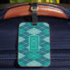 Étiquette À Bagage Jacquard élégant Turquoise et Aqua avec nom ou ini