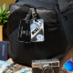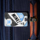 Ce sac à bagages à thème de volleyball girly peut être customisé avec son nom, monogramme et numéro de maillot sur un volleyball à lambeau bleu, noir et blanc abstrait surdimensionné avec un texte typographique audacieux qui dit "Mien !" et "Compris !" - les panneaux bleu et noir du volleyball sont mélangés avec un joli motif kaleidoscopique floral pour une texture est artsy et girly - customisez le dos avec son nom, son adresse, son numéro de téléphone - par katz_d_zynes