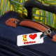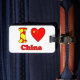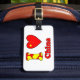 Ik hou van China bagage étiquette. Bagagelabel voor als je op vakantie gaat. Tekst : Je déteste la Chine. Het hartje est de vlag chinois.