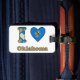 Leuke bagagelabel met de tekst : i love Oklahoma (i heart Oklahoma) Het hart is met de vlag van de staat Oklahoma. Kleuren : blauw, bruin en groen.