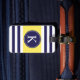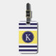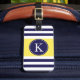 Le motif rayé ou la conception nautique géométrique moderne, élégant et à la mode à l'arrière-plan rayé de bleu marine et blanc propre croquant avec une rayure jaune citron d'accent et un monogramme ou une initiale fait sur commande personnalisé pour le bagage de sac de voyage étiquette. Cliquez sur le bouton de "personnaliser" pour personnaliser votre cadeau et pour ajouter vos propres initiales sur l'avant et les données d'adresses sur le dos. Choisissez votre propres police et couleurs pour lui faire vos propres. Ces rayures élégantes et chics impriment ou la conception fera un grand cadeau pour vous-même ou quelqu'un que vous aimez. Approprié aux hommes, aux garçons, aux femmes, aux filles et aux adolescents. Pour plus de couleurs allez : zazzle.com/D_Zone_Designs