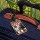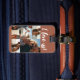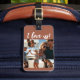 Teracotta moderne et blanc "I love us" brush script photo collage tag bagage avec nom et adresse personnalisés.