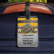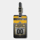 Ajoutez un peu de glam gridiron à votre équipement avec cette étiquette de bagages de football fausse parties scintillant luxe. Arrière - plan brillant noir et argent, rayures dorées et jaunes, emblème de style crête avec football en parties scintillant et étoiles. Customisez avec votre nom et votre numéro de maillot à l'avant, et ajoutez les coordonnées ou les instructions à l'arrière. Parfait pour les mamans de football, les joueurs ou les fans qui aiment briller avec leur sport.