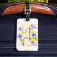 Étiquette À Bagage Joli bleu jaune brun simple fleurs nom adresse