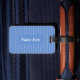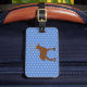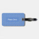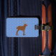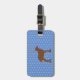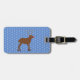 Cette étiquette à bagages impressionnante présente une image graphique d'un joli renne de Noël au nez rouge brillant. La Reindeer est brune et furieuse, elle a de grands bois et des sabots brun foncé. Son oeil est noir et elle a un grand sourire sur le visage. Des flocons de neige entourent le Reindeer et l'arrière - plan est bleu.