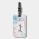 Étiquette À Bagage Jolies fleurs bleues sur Arrière - plan rose
