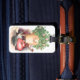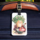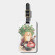 Antique postcard illustration from the 1900's, with a smiling face, rosy cheeks, humanized potted plant of four leaf clover shamrocks, surrounded by a red tampy heart and key, and a pretty golden yellow butterfly. Much good luck !