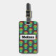 Une étiquette de bagage personnalisée sur le devant et vos informations personnelles sur le dos entre 2 cloisons vintages. Créé avec un motif extensible sur le devant. Une jolie illustration d'un cactus rond, avec de grands yeux kawaii, souriant et portant un sombrero rouge. À l'intérieur d'un pot de fleurs. L'arrière - plan est une image de tableau noir.