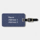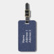 Cette étiquette de bagage personnalisée est bleu foncé avec la neige tombante et un bonhomme de neige heureux portant un casquette et une écharpe rouge et bleu tenant une chaîne lumineuse des lumières de Noël colorées. Customisez votre nom et votre adresse avec le modèle.