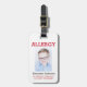 La photo faite sur commande badine l'étiquette d'avertissement de bagage de GLACE vigilante d'allergie. Attache dans un cartable, kit de médecine ou pour qu'un enfant porte. Customisez avec vos allergies, information de contact ou instructions de secours. Ajoutez la photo de votre enfant à l'avant. Éditez pour changer des couleurs de police et d'arrière - plan ou le style des textes. L'information peut être écrite sur l'avant ou le postérieur. www.LilAllergyAdvocates.com