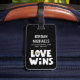 Ce design présente l'expression Love Wins avec un coeur arc-en-ciel coloré.