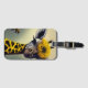 L'étiquette de bagage amusante présente une peinture d'art numérique surréaliste générée par IA d'une girafe fantaisiste métamorphosée avec un bourdon.