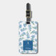 Étiquette florale mignonne de bagage avec un motif des myosotis des marais dans bleu, blanc, et le vert. Ajoutez votre nom et initiale sur un étiquette bleu. Le dos comporte une brindille de fleur sur un arrière - plan bleu-foncé et vous pouvez personnaliser avec votre nom et adresse.