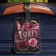 Un design décoratif portant le nom Ashley, entouré de roses, d'un coeur et d'un papillon.