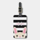 Étiquette adorable de bagage avec de larges rayures noires et blanches. Votre nom dans le rose et votre initiale dans le gris argenté. Et un lapin curieux scrutant à vous.