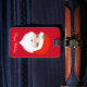 Santa Claus de Noël moderne sur étiquette de valise rouge. Tous les textes prêts à être personnalisés.
