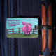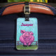 L'avant personnalisé par porc animal de défilé et l'étiquette arrière de bagage comporte notre porc rose aimable venant et entrant dans un domaine vert devant une barrière avec un ciel bleu texturisé sur l'avant et le porc drôle avec une queue bouclée et toute votre information sur le dos. Ne partez pas à la maison sans ce porc adorable maintenant vos sacs. Conçoit disponible en fonction du client.