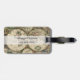 L'étiquette vintage de bagage de regard lit le voyage est la seule chose que vous achetez qui vous rend plus riches. Sur un fond vintage de carte du monde. Le dos a la même image avec le modèle fait sur commande pour ajouter le numéro de nom et de téléphone ou toute autre information de contact.