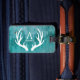 Le vert à la mode et rustique s'est rouillé étiquette de bagage d'impression en métal avec les andouillers blancs de cerfs communs et votre nom personnalisé.