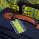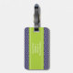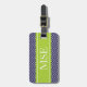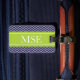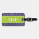 Les rayures élégantes, à la mode et chics de Chevron ou de zigzag modèlent ou conçoivent au bleu marine et à l'arrière-plan de blanc avec et accentuent Apple ou la rayure de vert de chaux avec le monogramme ou les initiales fait sur commande personnalisé pour des étiquettes de bagage de sac de voyage. Cliquez sur le bouton de "personnaliser" pour personnaliser votre cadeau et pour ajouter vos propres initiales sur l'avant et les données d'adresses sur le dos. Choisissez votre propres police et couleurs pour lui faire vos propres. Ce motif élégant et chic de chevron fera un grand cadeau pour vous-même ou quelqu'un que vous aimez. Approprié aux hommes, femmes, adolescentes, filles, garçons. Pour plus de couleurs allez : zazzle.com/D_Zone_Designs