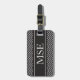 Les rayures élégantes, à la mode et chics de Chevron ou de zigzag modèlent ou conçoivent à l'arrière-plan noir et blanc avec et accentuent la rayure noire avec le monogramme fait sur commande personnalisé ou les initiales pour le voyage mettent en sac des étiquettes de bagage. Cliquez sur le bouton de "personnaliser" pour personnaliser votre cadeau et pour ajouter vos propres initiales sur l'avant et les données d'adresses sur le dos. Choisissez votre propres police et couleurs pour lui faire vos propres. Ce motif élégant et chic de chevron fera un grand cadeau pour vous-même ou quelqu'un que vous aimez. Approprié aux hommes, femmes, adolescentes, filles, garçons. Pour plus de couleurs allez : zazzle.com/D_Zone_Designs