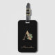 Élégante étiquette à bagages noirs avec un monogramme botanique en or au centre.