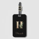 Élégante étiquette à bagages noirs avec un monogramme botanique en or au centre.