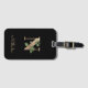 Élégante étiquette à bagages noirs avec un monogramme botanique en or au centre.