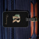Élégante étiquette à bagages noirs avec un monogramme botanique en or au centre.
