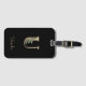 Élégante étiquette à bagages noirs avec un monogramme botanique en or au centre.