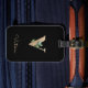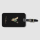 Élégante étiquette à bagages noirs avec un monogramme botanique en or au centre.