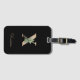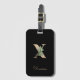 Élégante étiquette à bagages noirs avec un monogramme botanique en or au centre.