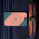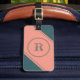 Cette étiquette à bagages chic comporte un double cercle géométrique centré en turquoise sur un arrière - plan saumon pâle. Personnalisez le champ de texte à l'aide d'une lettre initiale ou cliquez sur personnaliser pour sélectionner la couleur, la taille et le style de votre choix.
