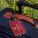 Design moderne avec lettrage blanc moderne sur imprimé arrière - plan en denim rouge rubis orne cette étiquette de bagage de voyage. Modifiez, ajoutez ou supprimez facilement l'initiale, le nom, l'emplacement, pour en faire le vôtre en utilisant le Modèle fourni. Étiquette de grande qualité 2,5 po x4 po, bracelet en cuir et étanche aux intempéries. Idéal pour voyager et sac à dos pour ordinateur portable, attaché, mallette ou sac de gym. Bon cadeau ! Est livré avec la carte dans l'emplacement sur le dos pour des informations détaillées ou remplacer par un carte de visite. Choix d'une balise simple (affichée) ou recto double. Pour plus d'informations, reportez-vous à la section "À propos de ce produit" à côté. Très bien coté !