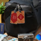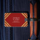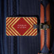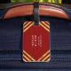 Voyagez dans le style avec cette élégante étiquette de bagage avec une fausse ligne géométrique d'or moderne motif contre un arrière - plan rouge.