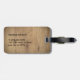 Elégante étiquette à bagages bleus personnalisable avec lignes noires, arrière - plan en faux bois et monogramme audacieux.