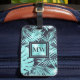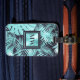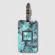 Un design numérique magnifique, moderne et dynamique de feuilles d'aquamarine / palme turquoise et monstère sur un bleu marine foncé qui a une incrustation carré faux brillant bordé du même bleu sur lequel apparait le monogramme de vos fêtes de mariée ou de votre mariage. Idéal pour les mariages de destination des îles ; vacances à Hawaï; vacances dans la jungle tropicale ou gâcher les femmes dans votre vie.