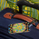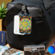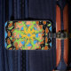 This fantastic, useful luggage tag, features my painting of a brightly coloured circle of lizards in a mandala design, drinking from a desert watering hole, against an abstract design. An unusual gift perfect for a lizard lover. Ideal to keep your case visible and a colourful accessory.