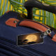 Faites ressortir vos bagages sur un carrousel d'aéroport avec des étiquettes uniques ! C'est l'automne, et une lune jaune doré et lumineuse s'est élevée derrière les silhouettes noires de feuilles soufflant dans la brise sur cette étiquette de bagage photographique d'art dramatique. L'arrière - plan est illuminée dans les tons orange, or et marron pour créer un motif abstrait dans un motif asiatique. L'inverse a un arrière - plan marron pour vos renseignements personnels personnalisables.